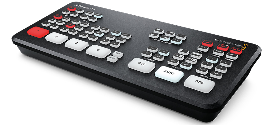 A popular choice is a Blackmagic Atem, and the latest of the range is the affordable £275/$295 Atem Mini, which can handle up to four HDMI inputs from cameras, and the brand-new £654/$595 Atem Mini Pro, which has even more features. The Mini has a two-channel audio mixer and can go straight into your computer for streaming via a webcam-out socket, so essentially your computer ‘sees’ it as a webcam. The Mini Pro has far more output options, such as the recording of streaming data to USB flash drives and direct streaming output via Ethernet and HDMI.
