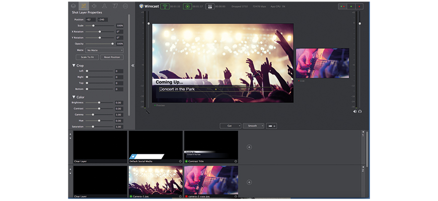If you only want to stream on YouTube or Facebook, but want to add transitions, captions or lower-thirds themes, inexpensive software such as justbroadcaster.com is ideal.