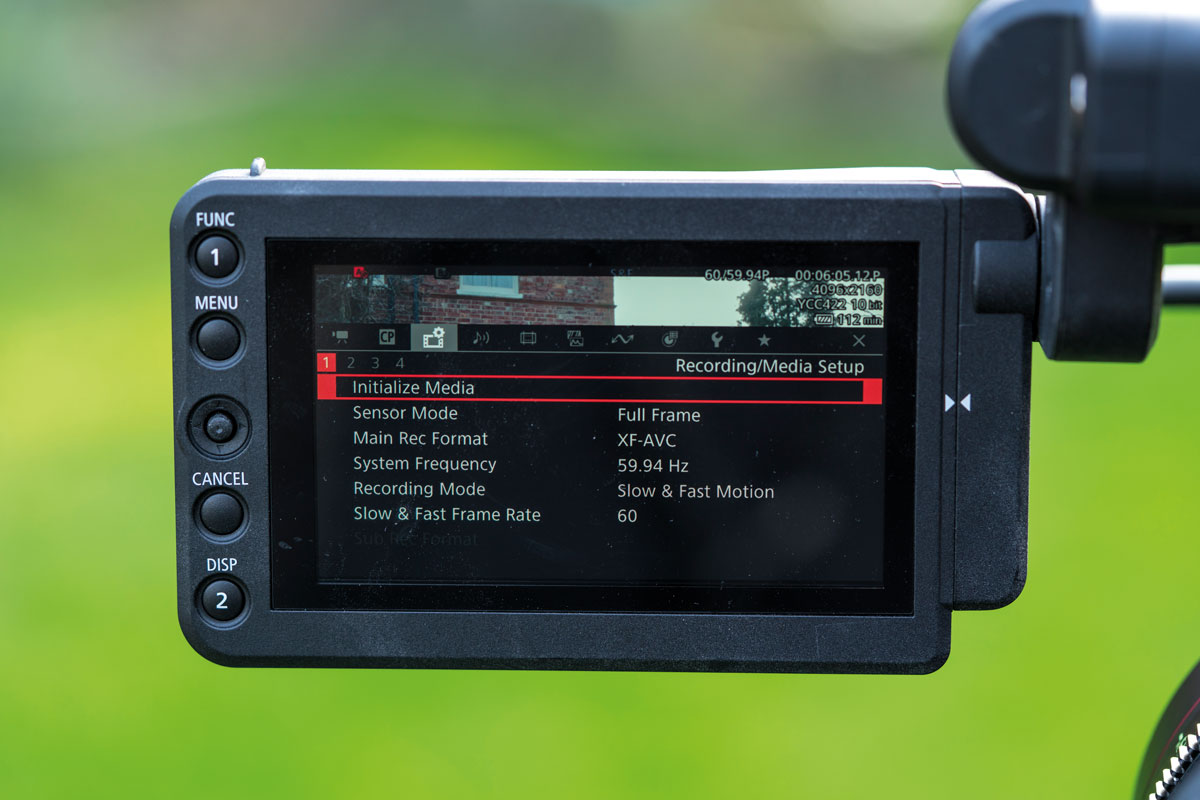All the functions can be accessed via a new on-screen display with all the complexities of a professional machine. You can change settings via a large thumb wheel on the left of the camera body or the joystick on the monitor – and it’s possible to alter certain controls through customisable buttons.