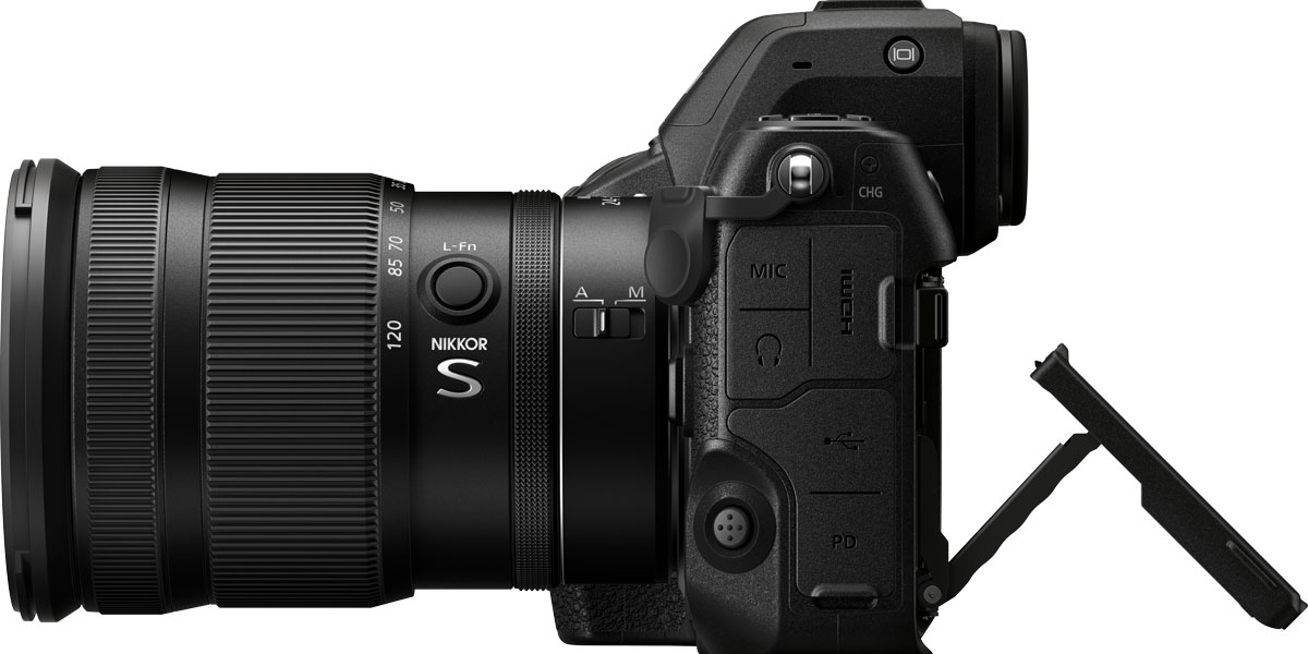 The Z 8 has a 45.7-megapixel full-frame sensor that gives an 8.3K native video resolution, with the same stacked CMOS sensor and Expeed 7 processor as the Z 9. Video can be recorded in-camera 12-bit Raw up to 8.3K/60p or 4.1K/120p, as well as 10-bit HLG video for HDR and 8K/60p internally for up to 90 minutes.