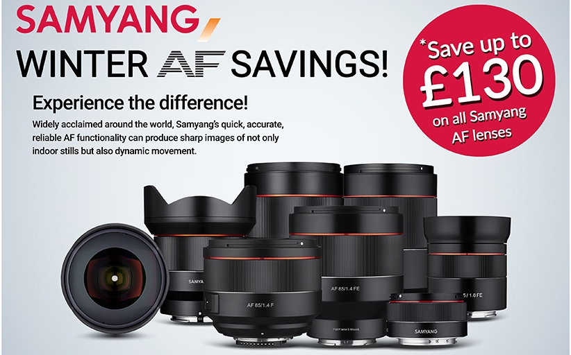 From now until 29th February 2020, there are instant savings of up to £130 (off suggested retail prices) on all Samyang AF lenses, via participating stockists in the UK and Ireland.