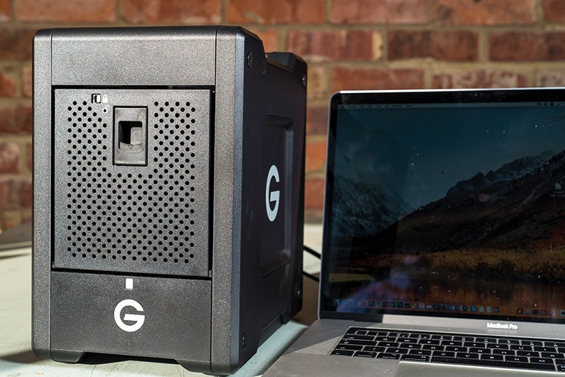 The unit comes pre-configured in RAID 5, which is a good balance of performance and data redundancy. You can also reconfigured it as RAID 0, 1, and 10, to suit your individual needs. The G-Technology comes pre-formatted for Mac, and it’s just plug-and-play. It instantly appears on the desktop ready for use. The MacBook Pro we tested it on uses Thunderbolt 3 ports, but it’s also backwards-compatible to Thunderbolt 2 and can be reformatted to work on Windows 10, 8.1 and 7.