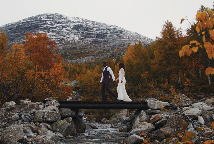 Asked by Blackmagic to make a film that would demonstrate the capabilities of the new model The Dreamers finally achieved their ambition and covered an elopement in Norway, which featured an eight-hour walk up a mountain in highly changeable weather. Two cameras and a ton of batteries were packed into a rucksack and there was still room for other essentials.